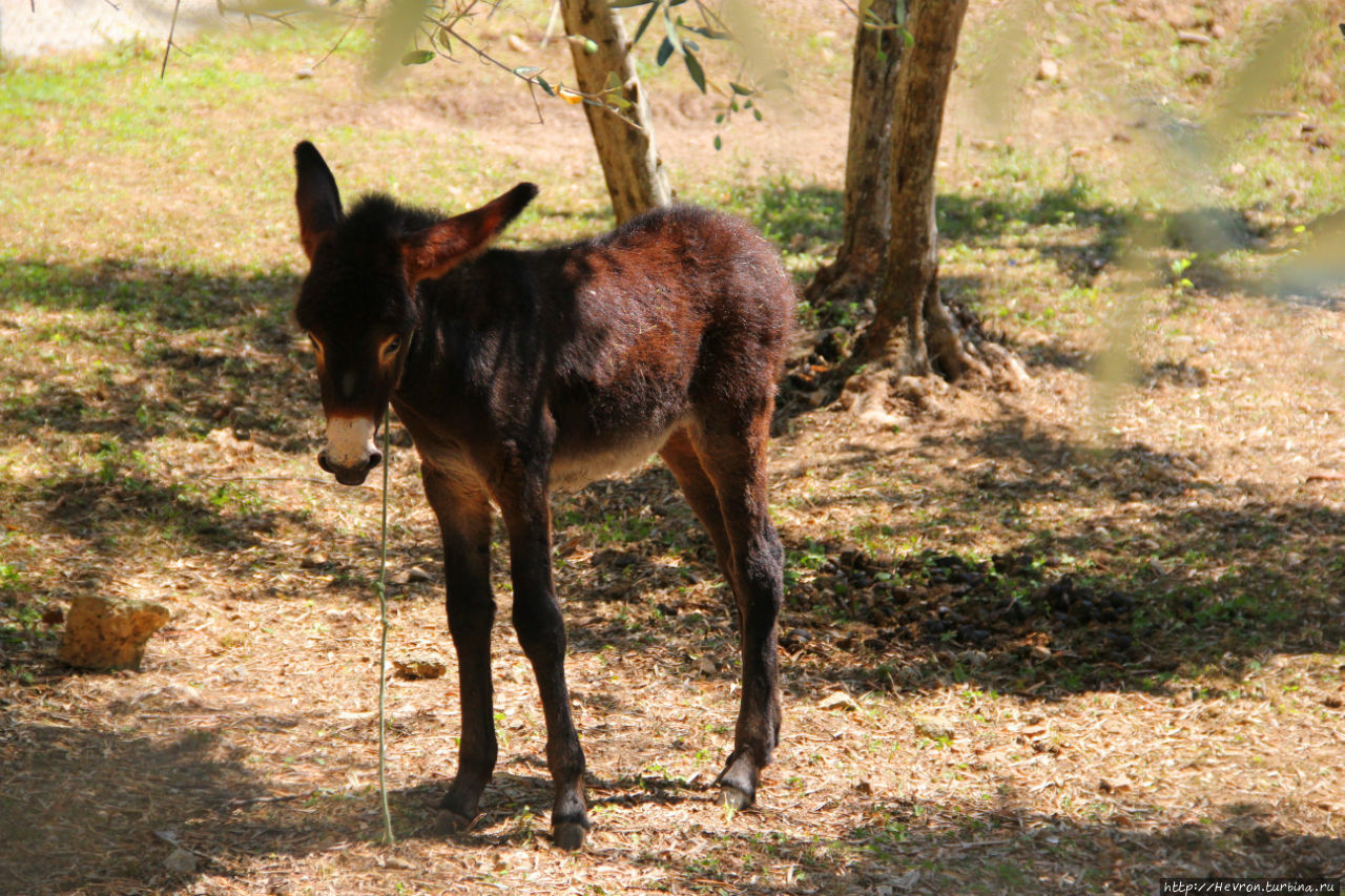 В тени оливы под стенами отдыхал от жары вот такой милый ослик.