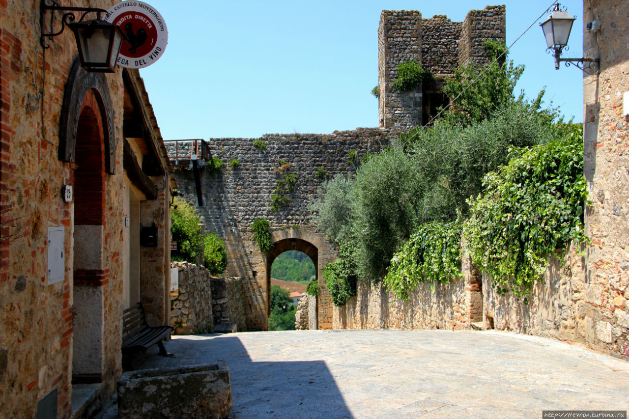 Со стен открывается вид на долину Кьянти простирающуюся от Сиены до Флоренции. Этот регион известен своим вином по всему миру.
