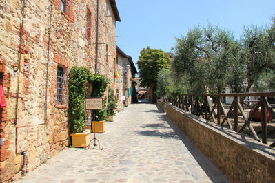 Выйдя с площади мы попадаем на узкие улочки деревни с невысокими домиками из красного старого кирпича и грубого камня. Здесь есть отель и кафе, сувенирные магазинчики и несколько ремесленных лавочек, таких как пошив обуви, интерьерные вещи для дома, ювелирный магазинчик.