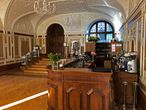 На ресепшине отеля мы узнали, что за дополнительную плату можно заказать экскурсию по замку-отелю, но сделать это желательно заранее. Экскурсовод там один, и через 20 минут у него экскурсия для школьников. Так что нам нужно либо подождать около 3 часов, либо прогуляться самим по открытой части замка на первом этаже...