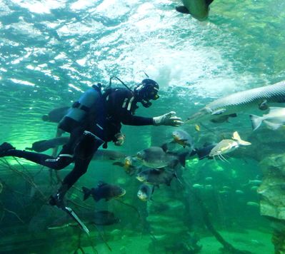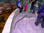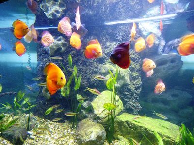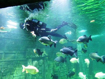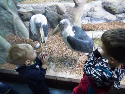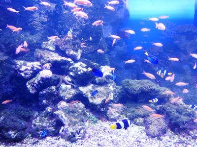 В "пресноводном отделе" очень эффектны осетры и им подобные большущие рыбы. В "Джунглях" — много зелени и водоёмов, при этом бабочки и птицы вообще летают свободно :).