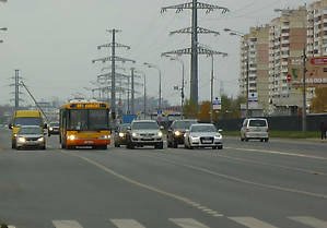 Мы заняли сидячие места из последних, а из Митина автобус выехал с немалым количеством стоящих пассажиров, невзирая на воскресенье. К моему удивлению, в Тушине (у метро) вылезло не так уж много народа, большинство ехали дальше. Время в пути до Белорусского вокзала составило 28 минут — считаю, очень даже неплохо, особенно если оно и в будни выдерживается. И неплохая экскурсия получилась (см. фотографии; при этом я далеко не все интересные объекты успела снять).