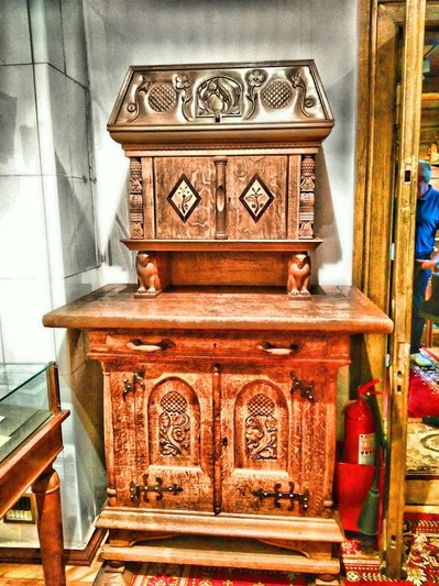 У Васнецовых, как я заметила, наблюдались только аутентичные предметы старинного русского быта, хоть он и мог себе позволить модные в ту пору диваны, но предпочитал лишь деревянные скамьи из массива, с двуглавым орлом дубовый столище посреди комнаты и вокруг расставленные кряжистые простые табуретки.