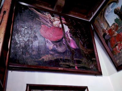 С первого этажа по деревянной лестнице можно подняться в сокровищницу терема – мастерскую художника. Меня поразила своими огромными размерами и высоким шестиметровым потолком эта комната. А знаете почему? Васнецов любил писать громадные полотна. Даже сохранилась здесь его старинная стремянка. И кругом завораживающие дух колоссы-картины...