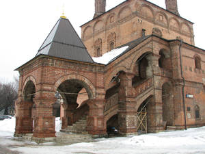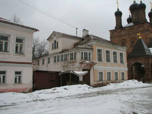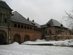 2.Митрополичьи палаты (1655—1670 гг.) представляют собой двухэтажное кирпичное здание, к южному фасаду здания примыкает сохранившееся в первоначальных формах крыльцо 1727 г.;здание капитально отреставрировано П. Д. Барановским.