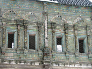 3 Крутицкий теремок и Воскресенские переходы, соединяющие палаты и собор, созданы в 1693—1694 годах зодчими Осипом Старцевым и Илларионом Ковалёвым. Теремок и Святые ворота облицованы уникальными многоцветными поливными изразцами работы Степана Иванова (использовано до двух тысяч изразцов).