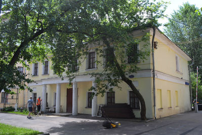 А вот вторая конюшня явно перестроена под жилой дом, перед которым даже дрова складированы. Неужели здесь до сих пор дровяное отопление используется? Или для других целей штабель лежит? А вот пристройка к ней более позднего времени. В объектив фотоаппарата попал справа кусочек еще одной пристройки — здесь когда-то располагалась домовая церковь.Вот такой неожиданный для центра Москвы двор разведал и подарил нам Максим Ершов, а мне осталось лишь сфотографировать и донести до читателей информацию про это примечательное место.