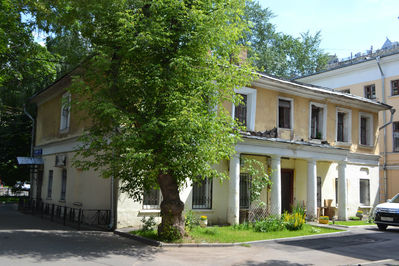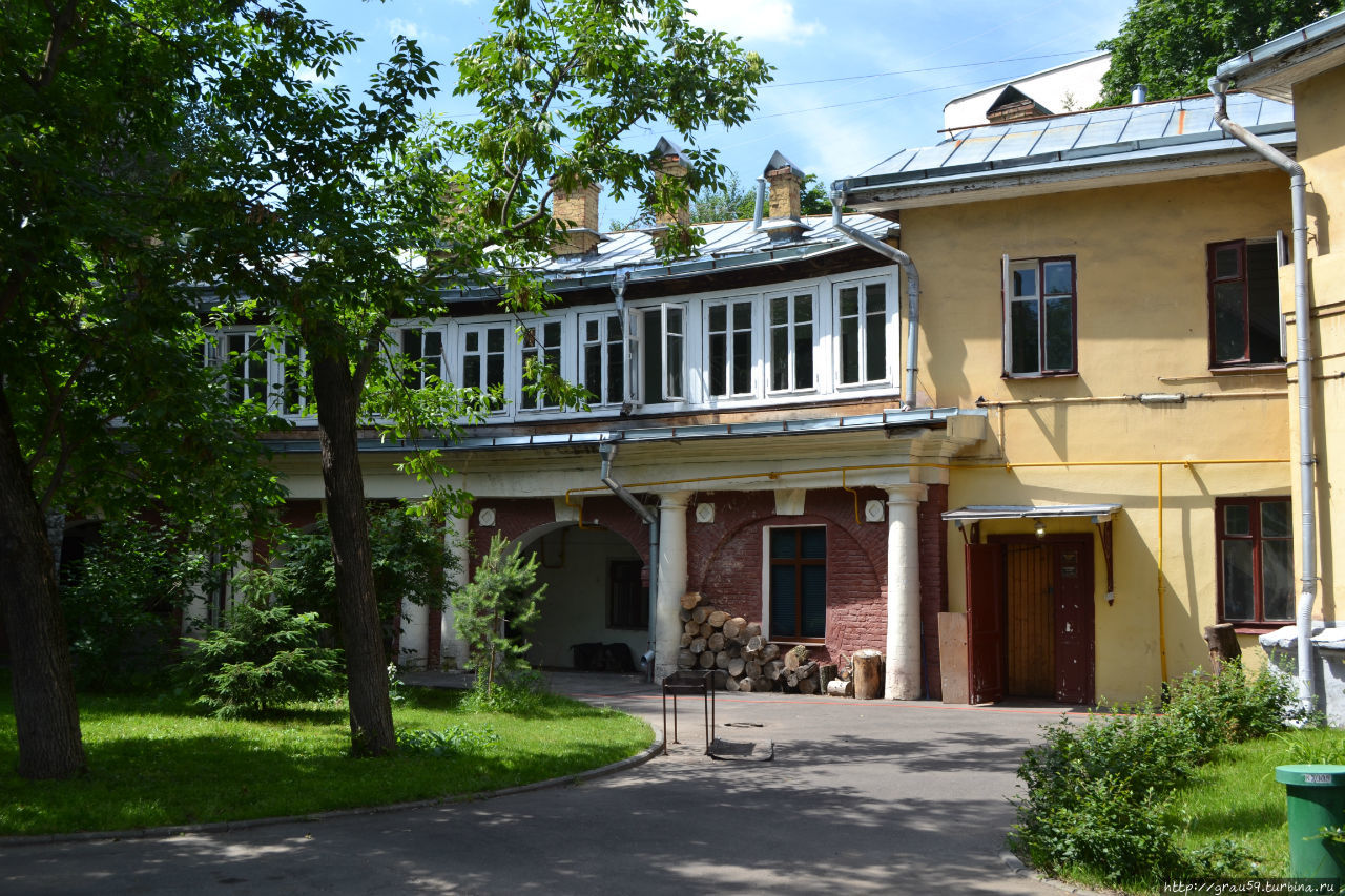которые добавляют очарования дворику. Как рассказал нам наш добровольный помощник, занимавшийся делами возле дома, здесь располагаются шесть мастерских скульпторов, которые подобным образом облагородили территорию.Удивительный двор когда-то был частью городской усадьбы Степановых, которую также называли усадьбой Охотникова и от которой сохранилось шесть зданий. Построена была усадьба после пожара 1812 года для корнета Павла Яковлевича Охотникова, а раньше на её месте располагалась усадьба Талызиных, пожарище от которой сменило одних хозяев на других.