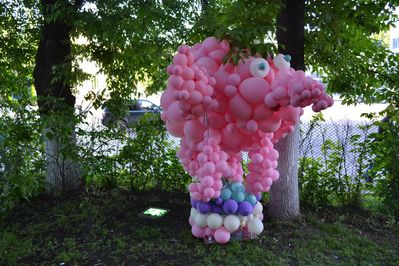 А при входе был прикольный, хотя и не деревянный, розовый слон.