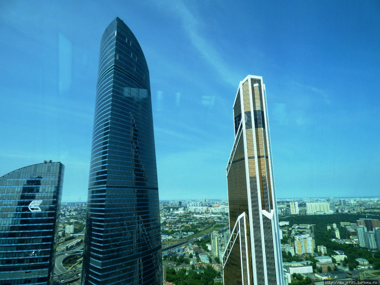 Международный деловой центр "Москва-Сити" представляет собой комплекс небоскрёбов на Пресненской набережной. Мы заранее записались на экскурсию на смотровую площадку в башне "Империя". "Подъёмы" туда идут каждый час с 11 до 23 часов. Взрослые билеты стоят 700 рублей (но в выходные до 14 часов действует скидка, и попасть в здание можно за 500 рублей с человека).