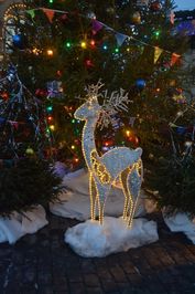 бродящий медведь под присмотром хозяина, предлагающий за деньги сфотографироваться, дедушка Мороз под ёлочкой и северный олень, с которыми фотографируются все кому не лень.На сцене выступают различные артисты,