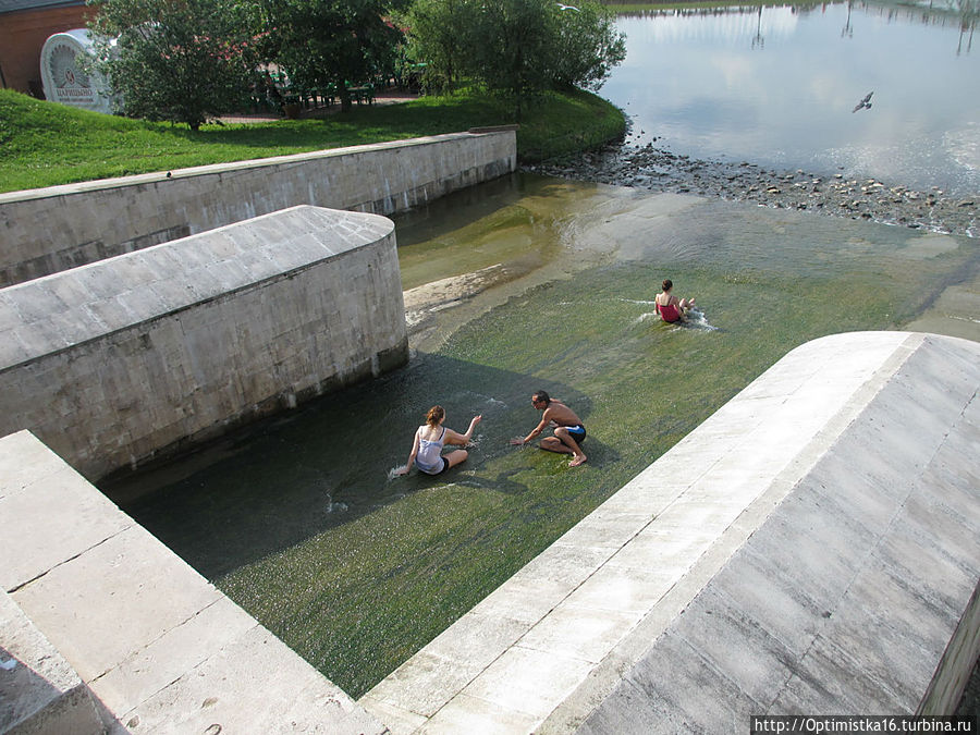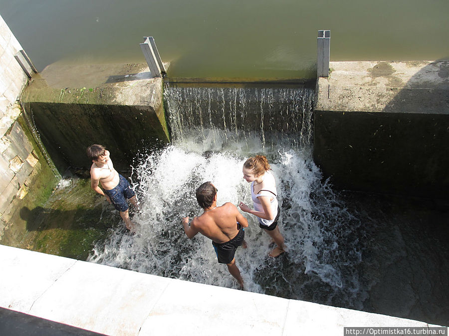 Можно даже искупаться и скатиться с водной горки, как это делает компания молодых людей.