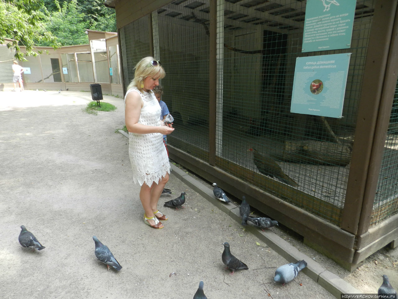 Выходим в город в сторону Воробьёвых гор. Над нами большая эстакада. Направляемся в парк, медленно поднимаясь вверх по асфальтовым дорожкам. Здесь недалеко от метро расположен маленький зоопарк или правильнее птичник и одна клетка с белками. Покупаем в специальном автомате корм. Идём угощать птиц и белок. Здесь обнаруживается проблема. На вольере белок очень мелкая сетка, через которую орехи фундук просунуть невозможно. Кидаем пушистым грызунам семечки. Угощаем птиц. Что-то попадает внутрь клетки, а что-то осыпается на улицу. Голуби, привыкшие к подобному, не дремлют. Воробьёвы горы в этом месте облагорожены тропинками. Спускаемся, гуляем по тропинкам, наслаждаясь упоительным запахом леса и его спасительной прохладой.Почему данное место названо именно в честь воробьёв? Сказать затрудняюсь. Здесь множество других птиц, которые шурша в листве, ищут себе пропитание.