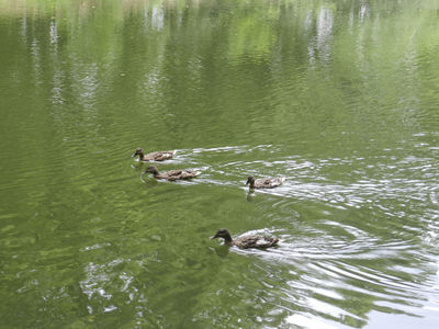 По всей видимости, когда-то давно на Воробьёвых горах располагалась дворянская усадьба. Во всяком случае правильная форма здешнего прудика такую мысль навевает. Волны от катеров и от кораблей тут нет, берега в бетон не закрыты, соответственно, уткам здесь живётся куда лучше. Такого обилия народа как внизу на набережной, здесь также нет. Кто живёт рядом, приходит гулять именно сюда. Изучаем стенд, который рассказывает о том, какие есть на Воробьёвых горах птицы, помимо самих воробьёв. Первый здешний пруд отделён от второго небольшой плотиной. Гуляя, замечаем кормушку для птиц. Жаль, что мы все семечки уже высыпали возле зоопарка. Здешних птиц угостить уже нечем.