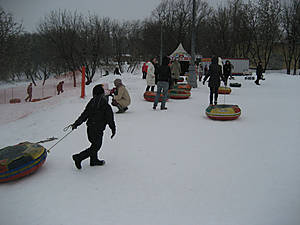 Все наше семейство питает большую любовь к катанию с горок, будь то ледяные, снежные или горки в аквапарках на любых средствах, а особенно на тюбингах. Эти надувные круги вызывают просто щенячий восторг у наших детей и зимой, и летом, да и мы, по правде говоря, не прочь развлечься подобным образом. Благо многие парки Москвы и ближнего Подмосковья предоставляют такую возможность не только детям, но и взрослым. И если в Сорочанах и в Коломенском катаются в основном наши дети, так как горки там пологие и короткие, то в Волене и Сокольниках катаемся и мы, родители, вместе с ними. В Сокольниках отличная широкая горка, минус только в том, что как правило покупается билет на сеанс, который будет часа через 3- горка не вмещает всех желающих, а вот Волен- райское удовольствие