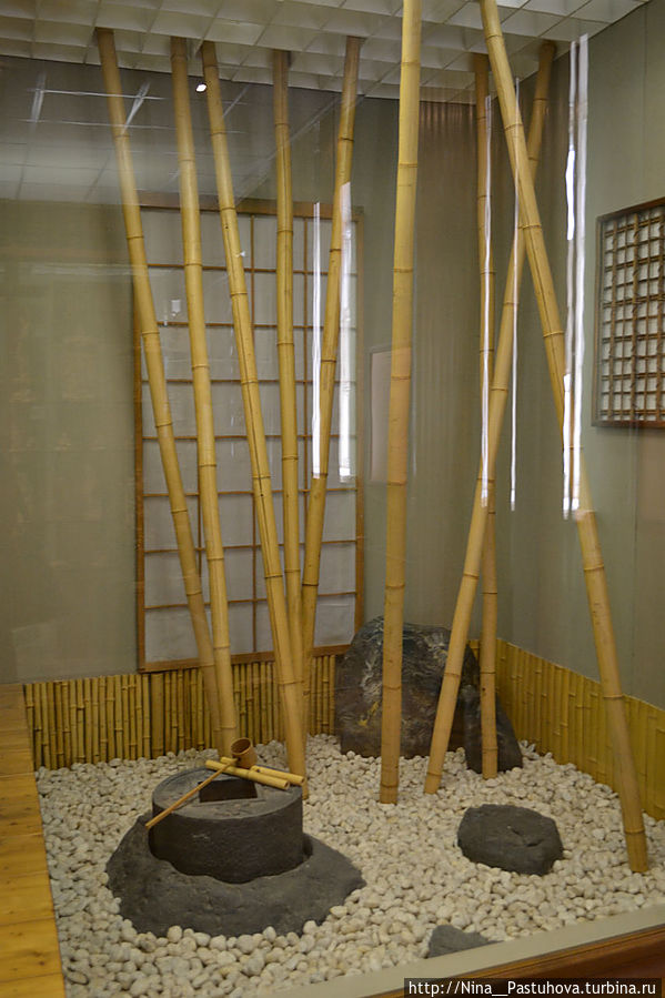 В залах музея воссоздана также часть традиционного японского дома с комнатой, подготовленной для чайного ритуала. Размещение вещей в традиционном интерьере, кажущемся почти пустым, дает возможность почувствовать особое отношение японцев к предметному миру, передать атмосферу повышенного внимания к каждой вещи – его материальной природе и духовному содержанию.