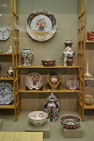 Фарфор, производство которого начинается в Японии только в первой декаде 17 в., представлен разнообразными изделиями мастерских Ариты.