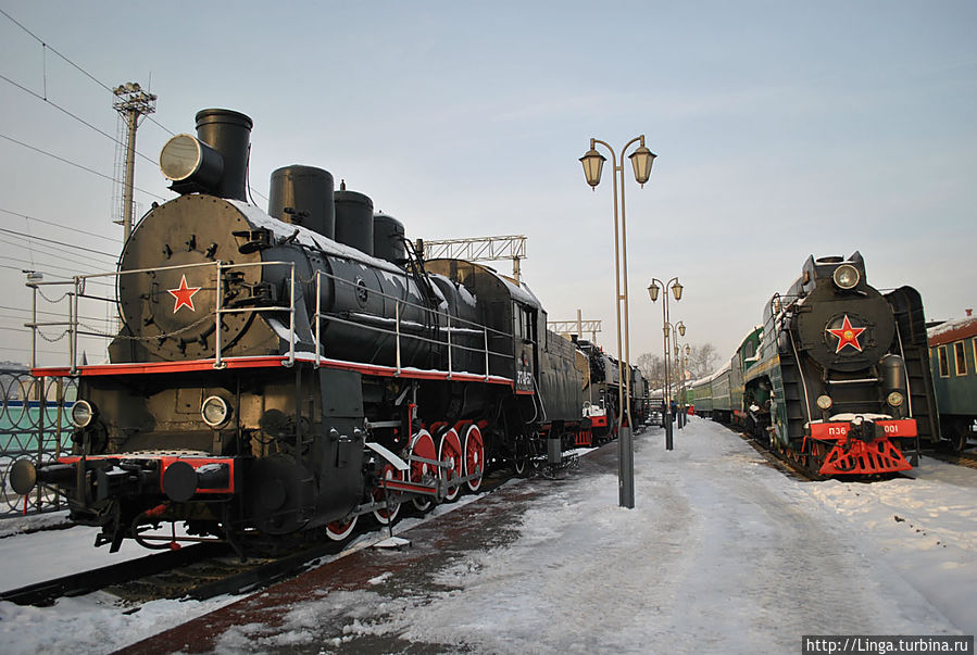Поскольку погода не очень располагала к вдумчивым неспешным прогулкам, я провел экскурсию в темпе галопа вдоль стройных рядов локомотивов разных лет и специфики использования. Здесь представлены паровозы от самых ранних моделей Ов до П36. В экспозиции есть даже немецкий паровоз серии ТЭ, попавший на наши дороги как трофей, родное название – «Кригслокомотив BR 52». Далее идут тепловозы, использовавшиеся в пассажирском и грузовом движении. А также электровозы, электропоезда, вагоны разных лет.