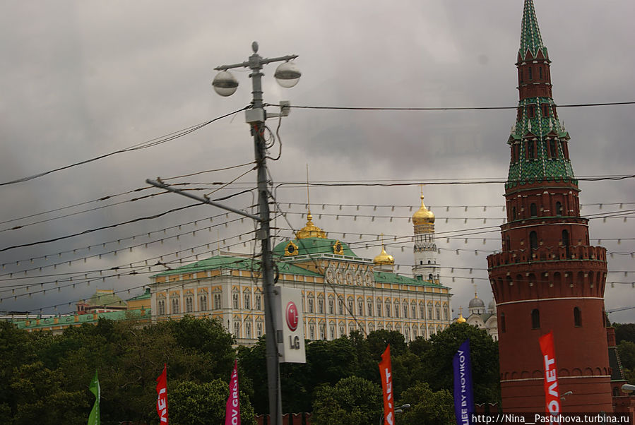 Поэтому летом, только из окна экскурсионного автобуса и фотографировала. И не смотря на погоду, свинцовые тучи, дождь — мне Москва и такой нравится!
