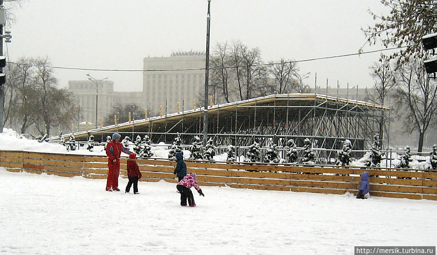 И мы "докатываем" зиму в парке Культуры на Крымском Валу, ведь каток здесь- один из самых крупных, а ледовое покрытие- одно из самых лучших. Утром в связи со снегопадом попали на целину, каток был покрыт 5-сантиметровым слоем снега; к 12 часам взялись за уборку и безупречно ровный лед засиял под солнцем