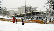 И мы "докатываем" зиму в парке Культуры на Крымском Валу, ведь каток здесь- один из самых крупных, а ледовое покрытие- одно из самых лучших. Утром в связи со снегопадом попали на целину, каток был покрыт 5-сантиметровым слоем снега; к 12 часам взялись за уборку и безупречно ровный лед засиял под солнцем