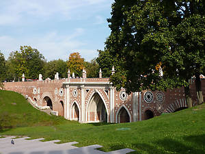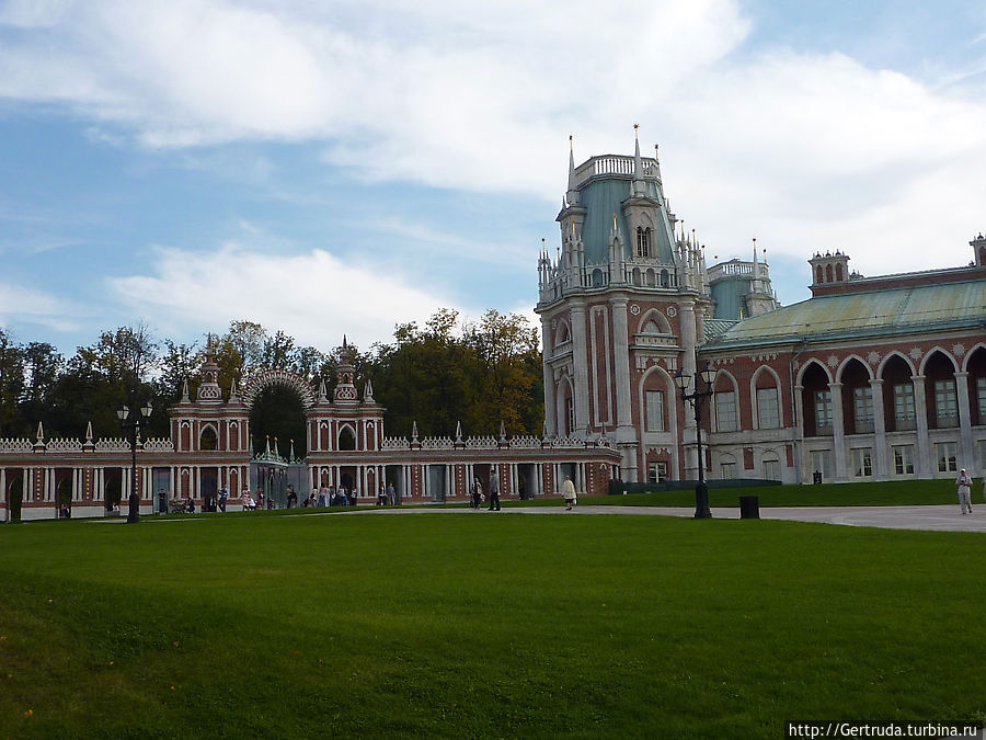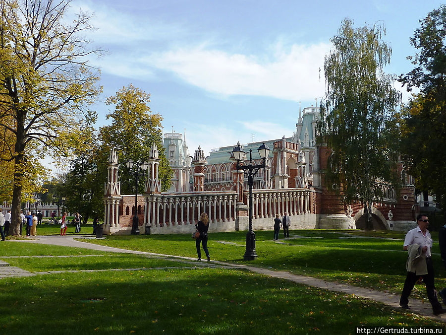 Приезжаю ли я в Москву на 3-4 дня, или проездом бываю всего сутки — всегда стараюсь съездить в те места, где еще не удалось побывать. В прошлом году посмотрели с подругой усадьбу Коломенское. На другой день поехали в Царицыно на машине, но на МКАДе в пробке простояли больше двух часов. Убедились, что по Москве все-таки лучше ездить на метро! В этом сентябре в столице я была один день, и не откладывая дела в долгий ящик, поехали с приятельницей в Царицыно. Добрались на метро всего за 40 минут. Вышли на станции Царицыно, а оттуда до входа в прекраснейший парк идти минут 5.