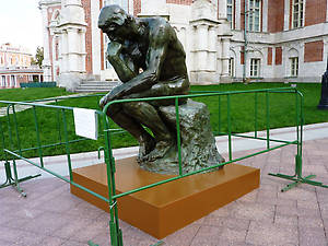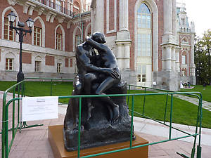 Эта каменная церковь была построена в 1722 г. владельцем усадьбы князем Дмитрием Кантемиром, служил приходской церковью. В 1940 году храм был закрыт, использовался как производственый цех. Вновь освящен в 1990 году. Сейчас там постоянно идут службы, рядом с храмом есть святой источник, над которым построена часовня. Мы поставили в храме свечи, в часовне попили святой воды! Рядом с Большим дворцом были выставлено несколько копий скульптур Огюста Родена.