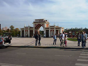 Правда, весь путь от метро до входа выглядит ужасно грязным. Неприглядная картина — сидящие на земле мелкие торговцы, побирушки, везде мусор — бумаги, пакеты, тряпки, окурки. Вот тебе и столица! И соответствующие запахи, хотелось уже повернуть назад. Но прошли под виадуком и перешли через дорогу, все безобразия остались позади, мы услышали чарующие звуки музыки. Потом нам кто-то сказал, что можно идти в Парк со стороны станции метро "Орехово", то там намного чище.