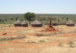 МОЯЛЕ разделено пополам ямой — одна сторона оврага в Кении, другая в Эфиопии – эфиопская часть явно больше, туда направляется поток людей с тачками и ослами, а из Эфиопии выехал только белый…