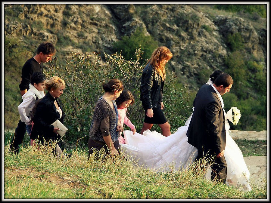 В этот день в Грузии было большое количество свадеб. Женихи и невесты были одеты в разнообразные наряды.