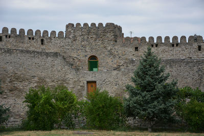 Храм окружён зубчатой крепостной стеной с башнями, построенной при царе Ираклии II.