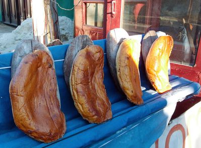 Там, прямо на обочине стоят деревянные сарайчики, в которых местные женщины выпекают на продажу необычный хлеб "назуки".