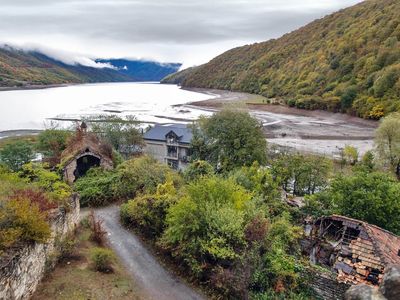Жинвальское водохранилище обеспечивает водой и электричеством грузинскую столицу. Оно появилось в 1985 году, когда при строительстве Жинвальской ГЭС, русло реки Арагви перекрыли 102-метровой плотиной.
