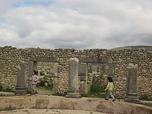 Совсем недалеко от руин древнеримского Волюбилиса и его обширной археологической зоны, у подножия горы Зирхун, как два больших муравейника, на высоких остроконечных холмах расположен священный город для всех мусульман Магриба – Мулай-Идрис. Сквозь арки античного Волюбилиса, на зелёном фоне оливковых рощ, белостенный город кажется сказочным миражом спустившимся с небес вместе с утренним туманом. Второй панорамный вид сквозь кактусы и агавы…