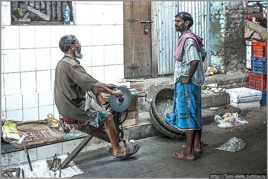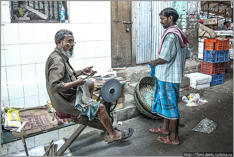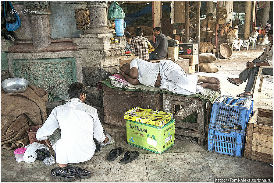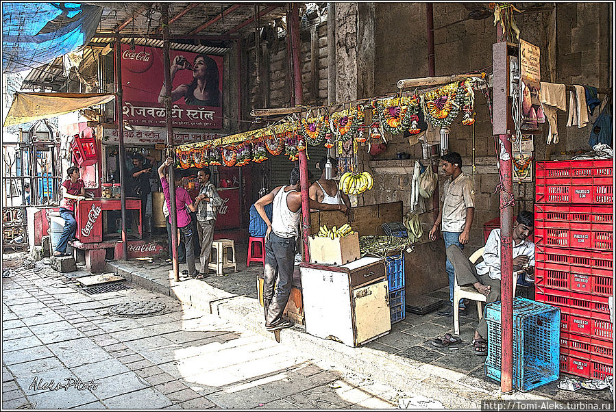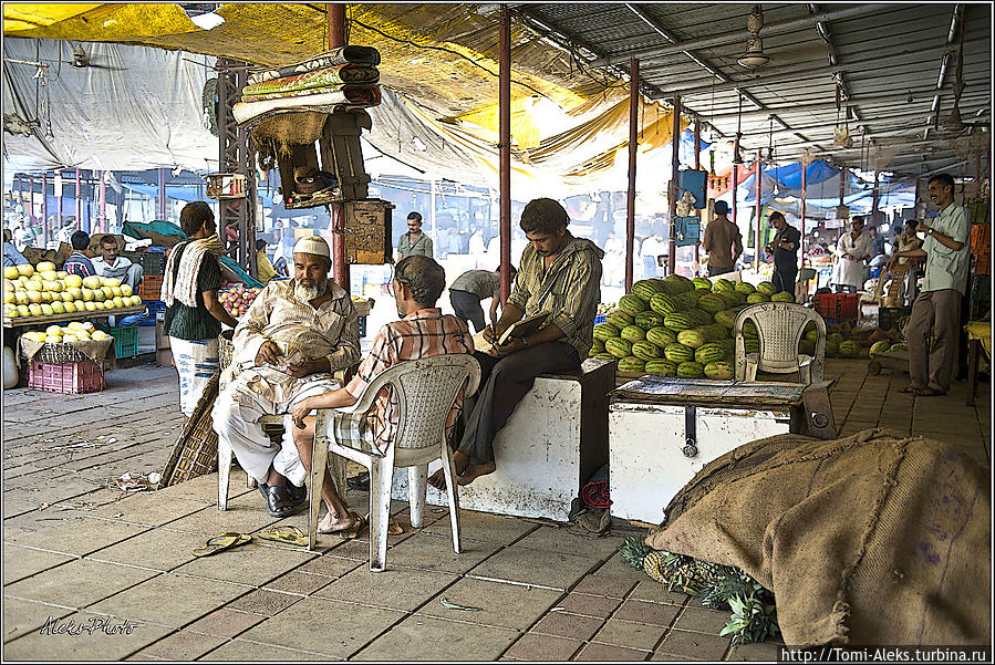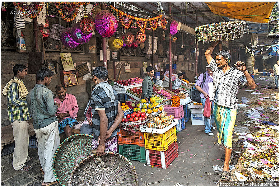 Насмотревшись на то, как стирают белье в прачечной Дхоби Гхат, мы держим путь на рынок Crowford Market — один из самых больших в городе. Ведь, если хочешь посмотреть жизнь простого народа изнутри, — рынок — прекрасное место. Правда, полуденное солнце Бомбея создавало массу неудобств для съемки. Но все-таки это было немного лучше, чем кромешный туман и сырость — в августе в Пекине...