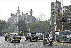 Интересно, что Бомбей, как и многие другие города мира, находится на семи холмах. Что за странная тенденция. Пройдемся еще раз напоследок по колониальной части, где всегда многолюдно. По пути встретим здание центральной библиотеки в греко-римском стиле. Напротив, прямо у дороги — спят в тени уставшие таксисты. Дальше — по торговой улочке, мимо индианок, несущих свои извечные плетеные корзины на голове. Пройдем еще пару кварталов под сводами свисающих зеленых крон баньяна. Интересно, что город Джайпур в Индии принято называть "розовым городом" — по преобладающему в нем цвету. А какой же тогда по цвету Бомбей? Я для себя окрестил его "зеленым городом" — на всех фото можно заметить какой-то болото-зеленоватый оттенок...