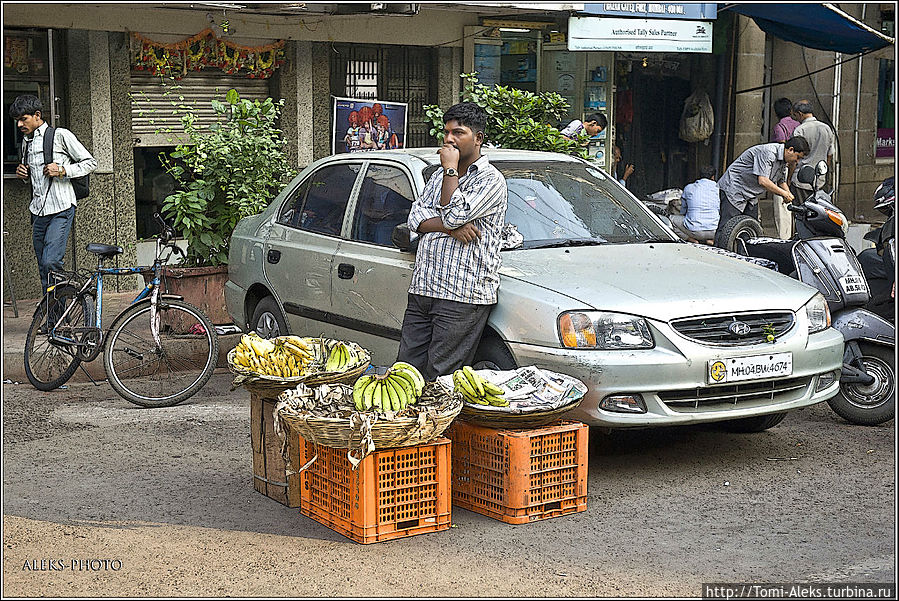 Как то я смотрю на бомбейских уличных торговцев и вспоминается мне сразу о запрете на уличную торговлю в наших городах. С одной стороны, уличные торговцы вносят разнообразие в городской ландшафт. С другой, — идешь иногда по и без того узкой улице, а тут сидят на дороге всякие торгаши, создавая тротуарные пробки. У нас, я заметил, как только выходят торговцы на улицы, центр города сразу становится похожим на деревню... Ну, а Индия, — это и есть большущая такая деревня. На самом деле, забавно рассматривать, чем заняты в повседневной жизни индийцы. Предлагаю и вам посмотреть на актеров каждодневного уличного спектакля под названием "Купи-Продай", причем, зачастую не важен сам сюжет, — важны детали!