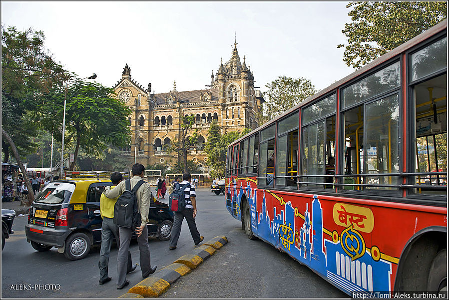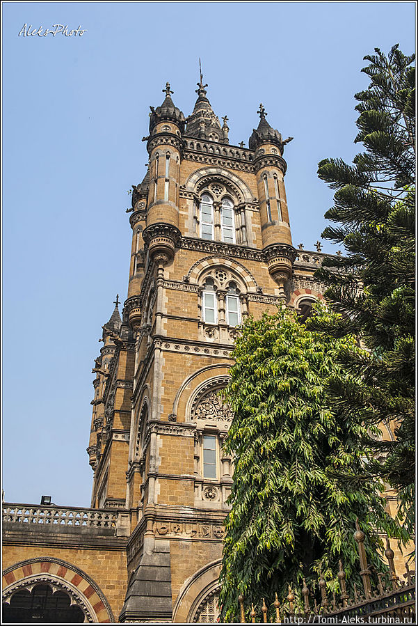 Бродя по колониальному центру Бомбея, мы все время натыкались на грандиозные по своему архитектурному замыслу здания. Причем, размах этих зданий и пышность декора — удивляют. Так и хочется постоять, разинув рот, и поглазеть ввысь — ведь выстроить любую из таких махин — это сколько надо вложить человеческой мысли и сил. И это — в одной из самых бедных стран мира, где повсюду бродят нищие голодранцы с просветленным взором...