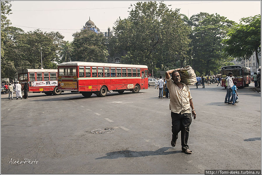 Жалею только об одном, что, желая посмотреть побольше всего в городе, я как-то наскоком пробежал мимо вокзала, и пофотал тоже на скорую руку — ну это, как всегда. А стоило бы пощелкать отдельно его детали, тем более, что сразу вместить в кадр эту махину очень сложно. Особенно — стоя прямо у здания — слишком оно обширно и представляет собой развернутую букву "С". Короче, что снял — то снял. Единственно, что меня сильно напрягло в Мумбаи, — это туман и смог — два в одном. Во-первых, у них там в это время зима, во-вторых, у моря, видимо, там всегда пелена испарений и тумана, особенно по утрам. Короче, все фото города мне не нравятся по цвету, и сколько я ни бился в фото редакторе, привести их в приятный для глаза цвет — не смог. Все окутано какой-то дымкой, искажающей цвета, и плюс — яркое полуденное солнце... Далее — смотрите фото: