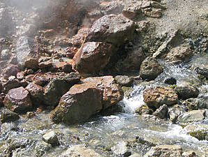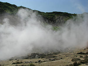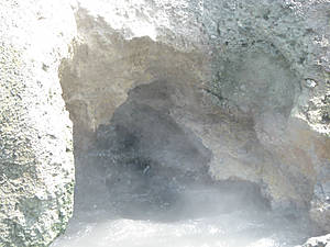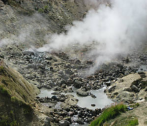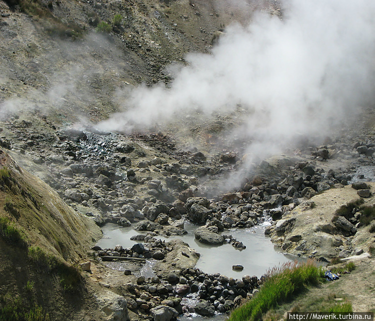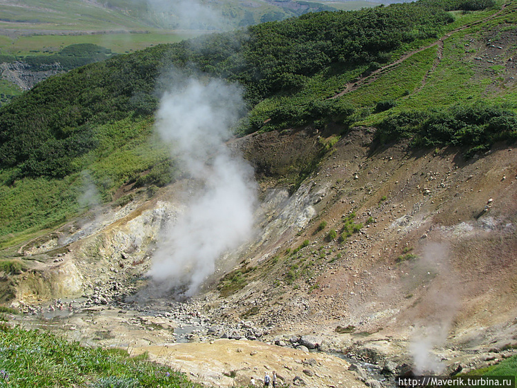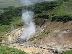 Они расположены в большом овраге с отвесными стенами. На левом склоне находятся несколько нагретых площадок, клокочут паровые котлы и вырываются струи пара. А на дне, на небольшом уступе правобережного склона бурлит большой котёл из которого вырываются очень сильные струи пара.