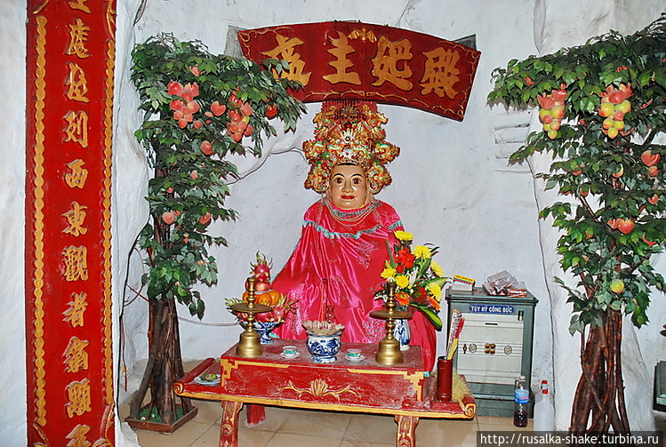 А вот и тысячерукая, всех слышащая и всем помогающая бодисатва Гуанинь. И на непременном цветке лотоса. Долго пыталась выяснить у одного служителя храма, типа смотрителя, как её имя на вьетнамском, кроме "мадам Будда" ничего не выудила.