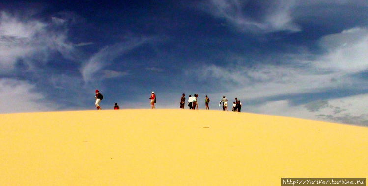 Оставив машины, двинулись босиком по грунтовой дорожке, ведущей к этим холмам. На стоянке машин крутились предприимчивые мальчишки, которые предлагали за 100 тысяч донгов (5 долларов) лист видавшего виды помятого пластика (50х100 см) для катания на заднице с дюн.