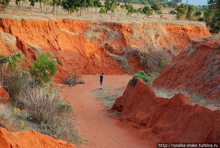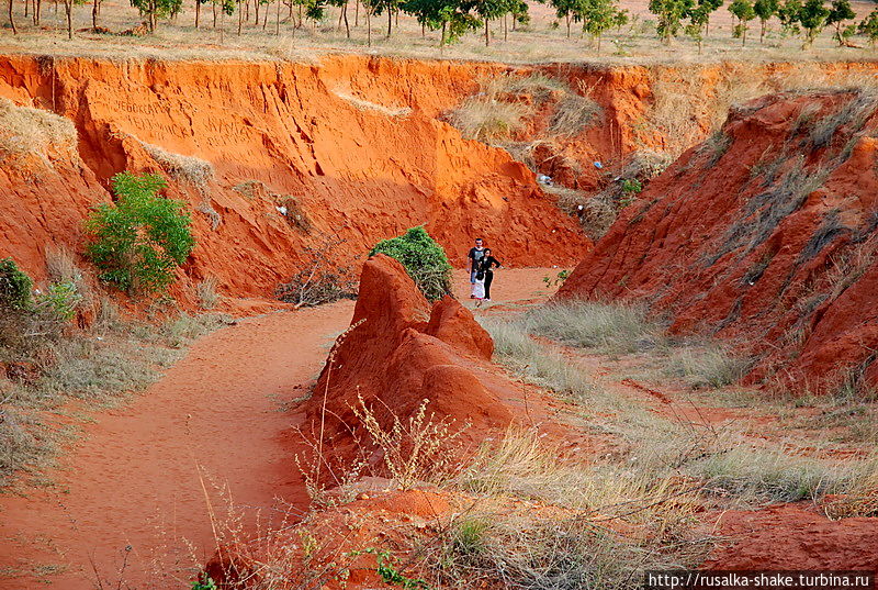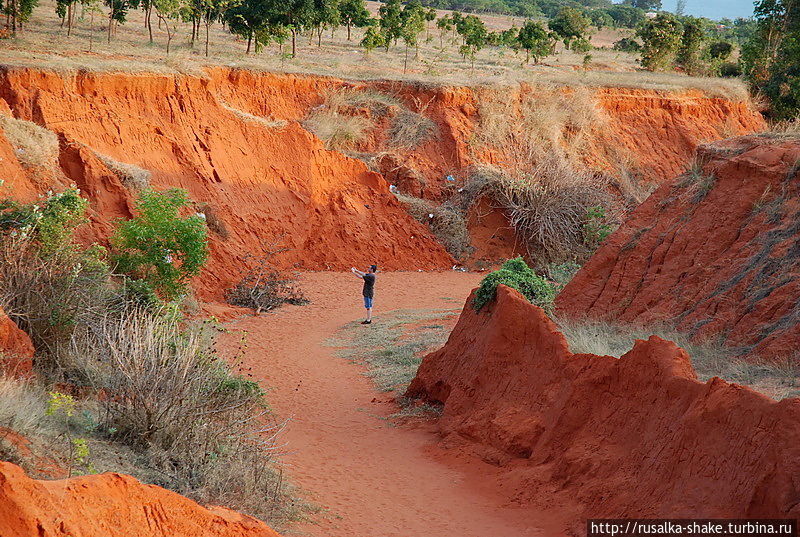 Белые дюны можно сделать остановку в пути, чтобы посетить Красный каньон. Его очень легко не заметить, поскольку с дороги его можно принять за небольшую трещину в песке.