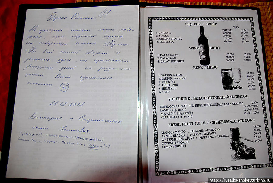 Рядом с нашим отелем находилось уютное заведение. Хозяева его "на раз" определили в нас русских и принесли меню. На первой странице гордо продемонстрировали отзыв кого-то из отдыхающих.