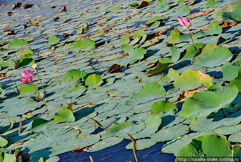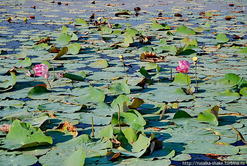 Нет, лопухи по поверхности, конечно, были. Но такой картинки, как в рекламе на щите в виде ярких огромных цветов, заполняющих озеро до горизонта, я не увидела.