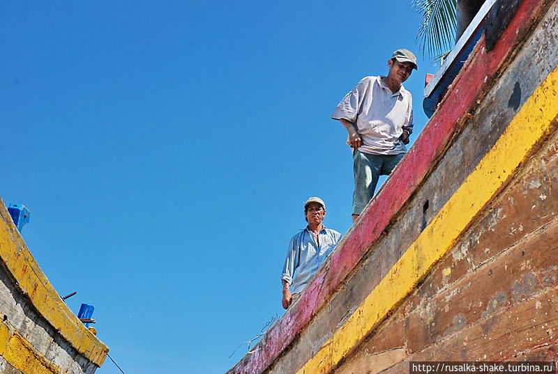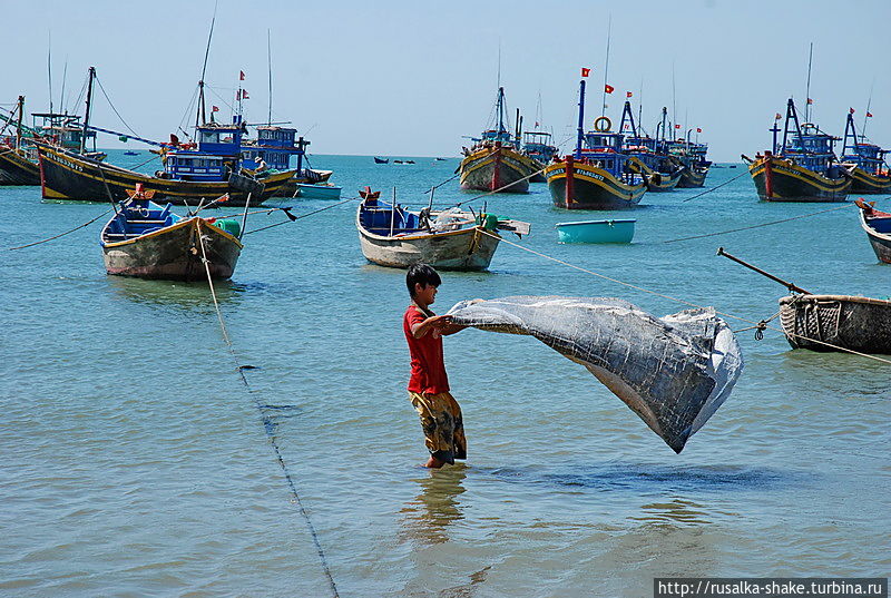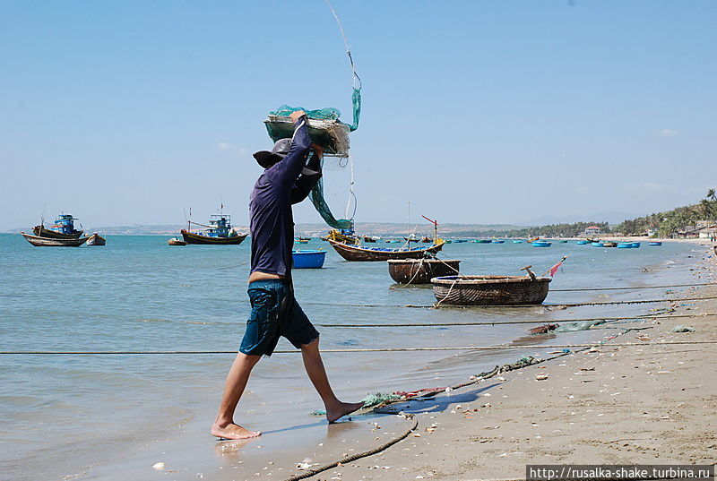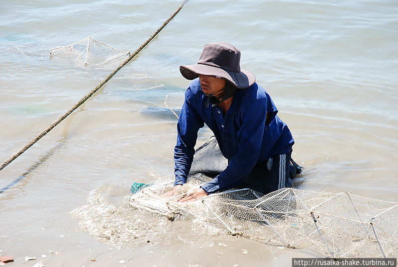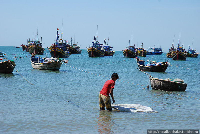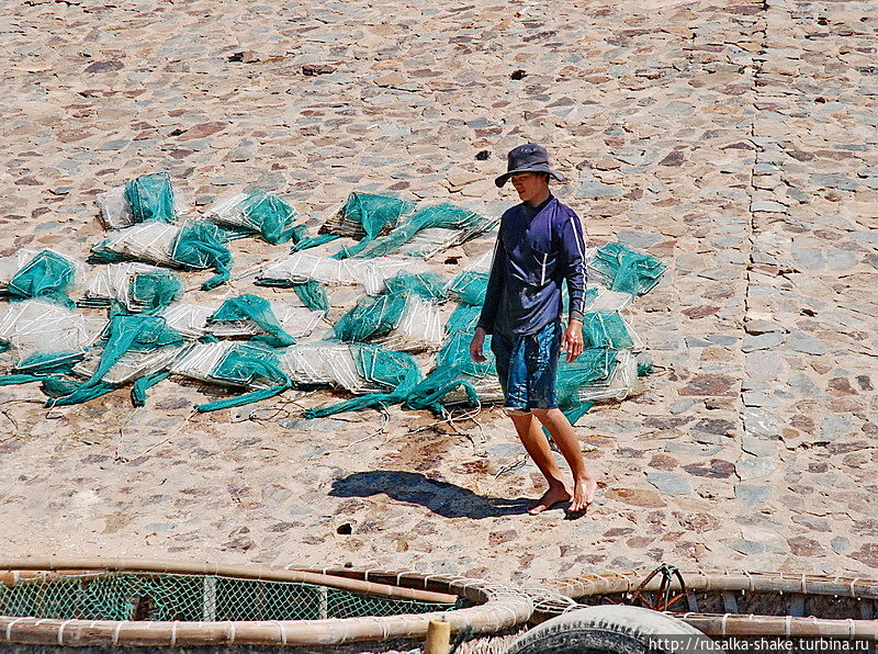 Мужчины моют свои сети, раскладывают их на солнце для просушки. Тут же ремонтируют — зашивают дырки, если нужно...