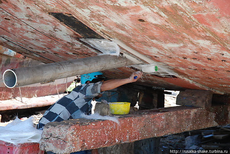 Чуть дальше идет более серьезный ремонт более серьезных судов. Что-то конопатится, что-то красится, что-то откручивается...