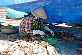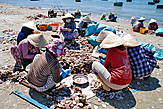 Сюда я приехала утром, надеясь встретить рыбаков с ночной рыбалки. Наивная... Для меня 10 часов — это утро, а для рыбаков это почти день). Так что я застала женщин, во всю работающих по сортировке "даров моря". Некоторые тут же перебирали ракушки и даже очищали их, специальным инструментом отделяя мясо морского гребешка от раковины.