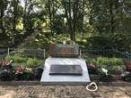 У подножия кургана (видна лестница на его вершину) военный мемориал в память о погибших при освобождении местечка.