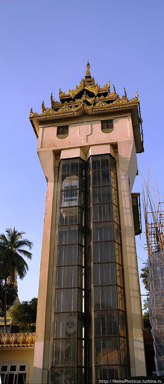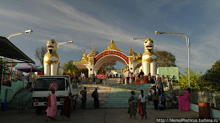 Собственно, к Шведагону и поехали, разувшись полностью, включая носки, и поднявшись на лифте ко входу со стороны Южных ворот — их всего четыре.